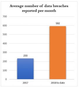 This is the first indication of the impact of the new GDPR regulation which introduced mandatory reporting of data breaches in certain cases.